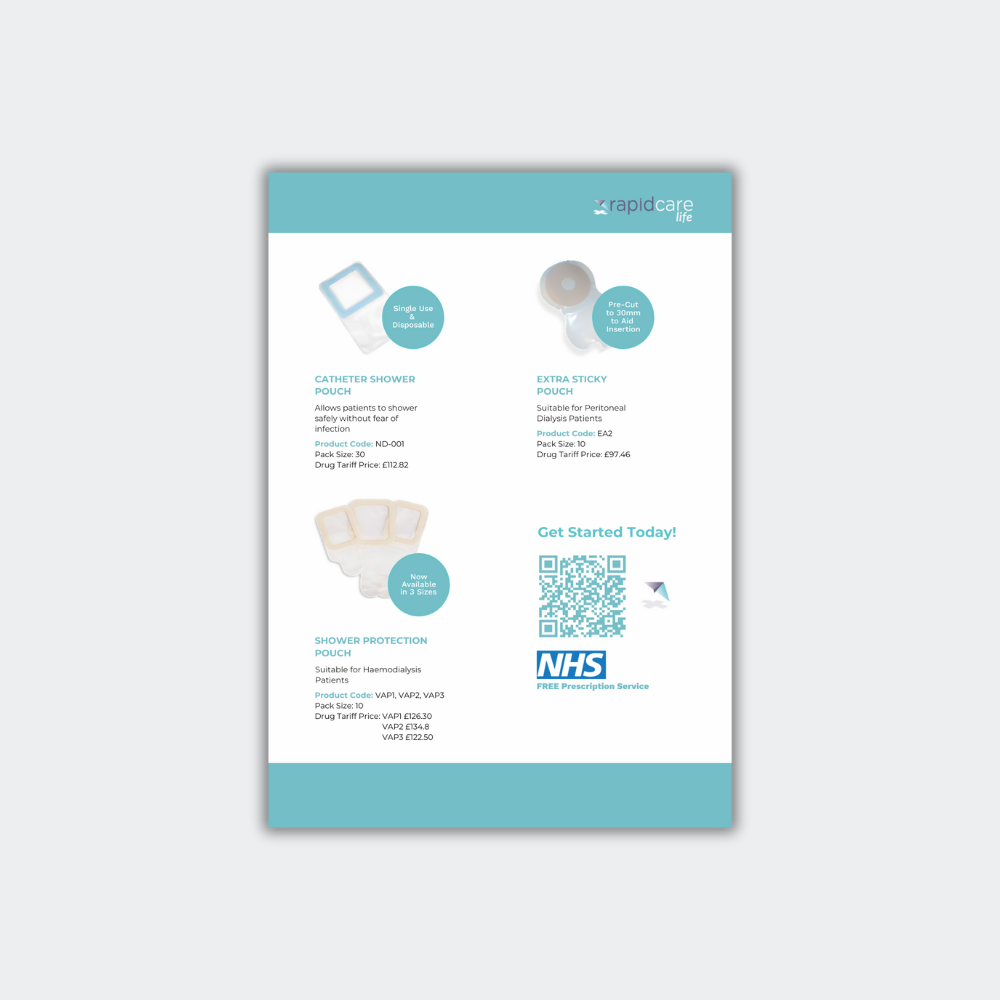 A5 leaflet, printed on cardboard. Note: This leaflet can only be distributed to nurses, as it contains Drug Tariff prices.